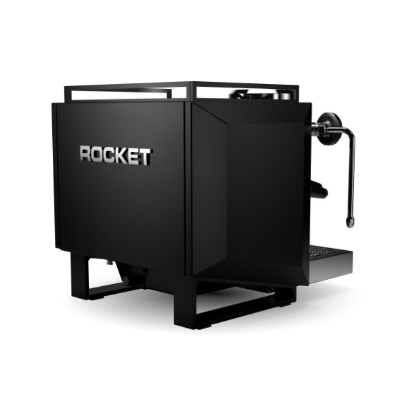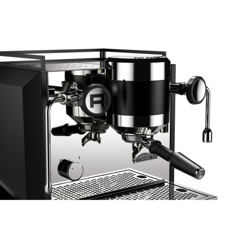 Dual stainless steel boilers. Rotary pump with water reservoir or direct water connection. Stainless steel or matte black finishing options. Available early 2024 via Rocket partners worldwide.